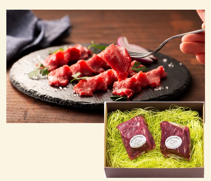 上赤身80g×2※カナダ産(熊本肥育)※馬さし専用のたれ・生姜付 自家牧場育ちの新鮮な馬さしです! 赤身馬刺しのお手頃ギフトセット!