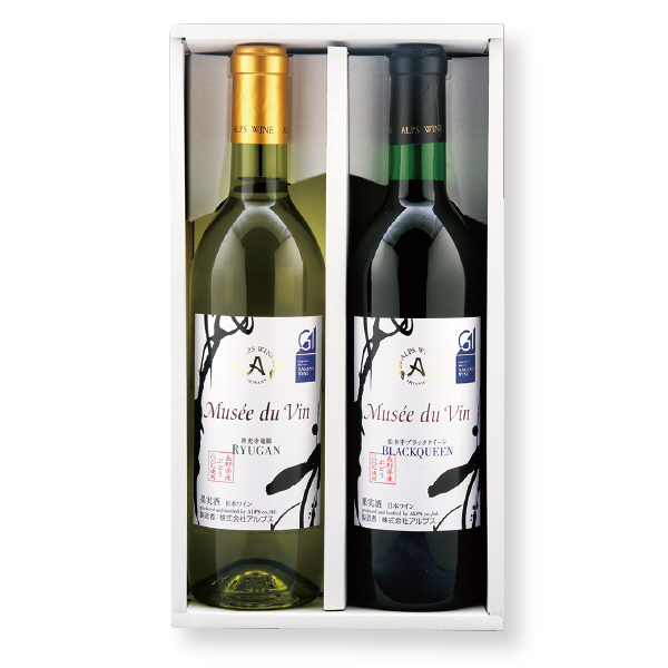 信州松本平産ブラッククイーン種と信州産善光寺竜眼種をそれぞれ100%使用した、赤白ワインの2本セット。