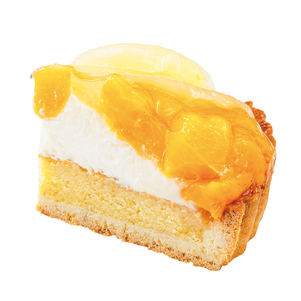 アーモンドパウダーを加え香ばしく焼き上げたサクサク食感のタルト生地の上に、カスタードクリーム、色とりどりの5種のフルーツを盛り付けた煌びやかなフルーツタルト