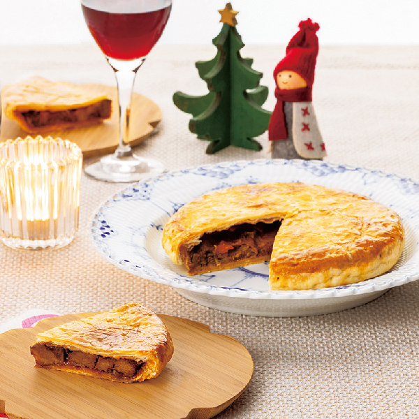 広島県の自社農園産ぶどうを100%使用した赤ワインの香り、牛肉の旨味が自慢のビーフシチューパイです。