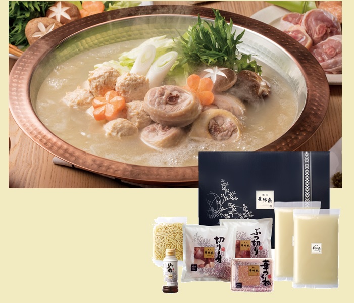 水たき生スープ600g×2、華つくね200g×1、切り身300g×1、ぶつ切り300g×1、博多ぽん酢220ml×1、ちゃんぽん麺150g×1