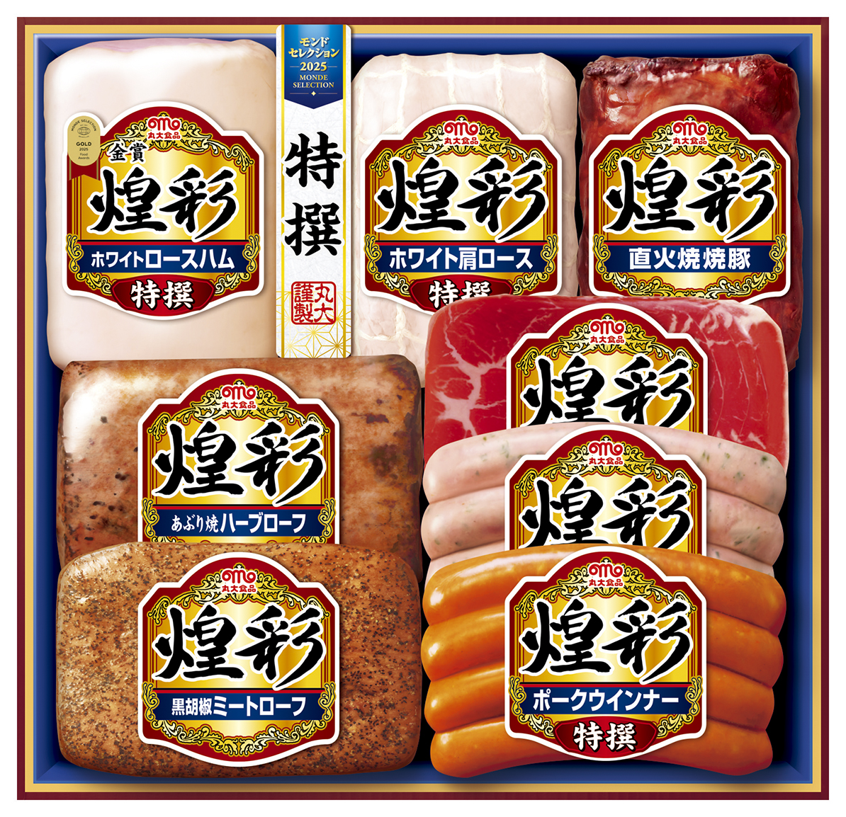 特撰ホワイトロースハム350g、特撰ホワイト肩ロースハム170g、直火焼焼豚 170g、黒胡椒ミートローフ160g、あぶり焼ハーブローフ170g、生ハム肩ロース36g、特選ポークウインナー80g、特選ポークウインナー(ハーブ&レモン)80g、