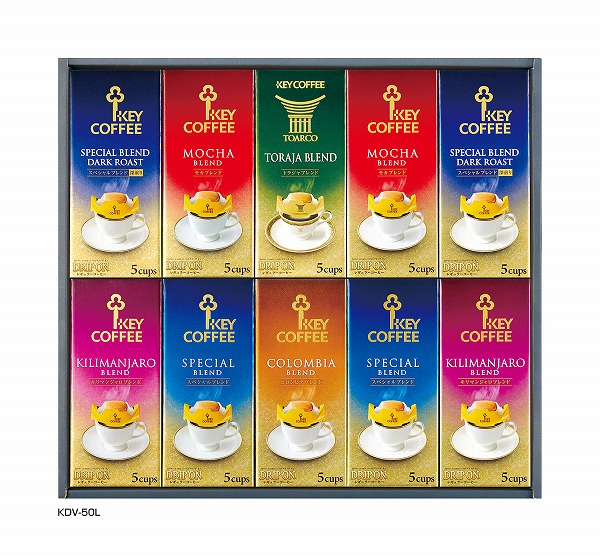 スペシャルブレンド(8g×5袋)×2箱、スペシャルブレンド深煎り(7.5g×5袋)×2箱、キリマンジャロブレンド(8g×5袋)×2箱、トラジャブレンド(8g×5袋)×1箱、モカブレンド(8g×5袋)×2箱、コロンビアブレンド(8g×5袋)×1箱