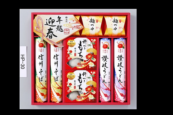 信州そば・讃岐うどん各140g×2、杵つき丸もち(33g×4)×2、麺つゆ(25ml×2)×4