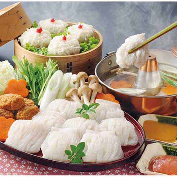 西京はも骨切り400g、西京はもしゅうまい30g×8、鍋つゆ、からし酢味噌20g×4、ぽん酢15g×4