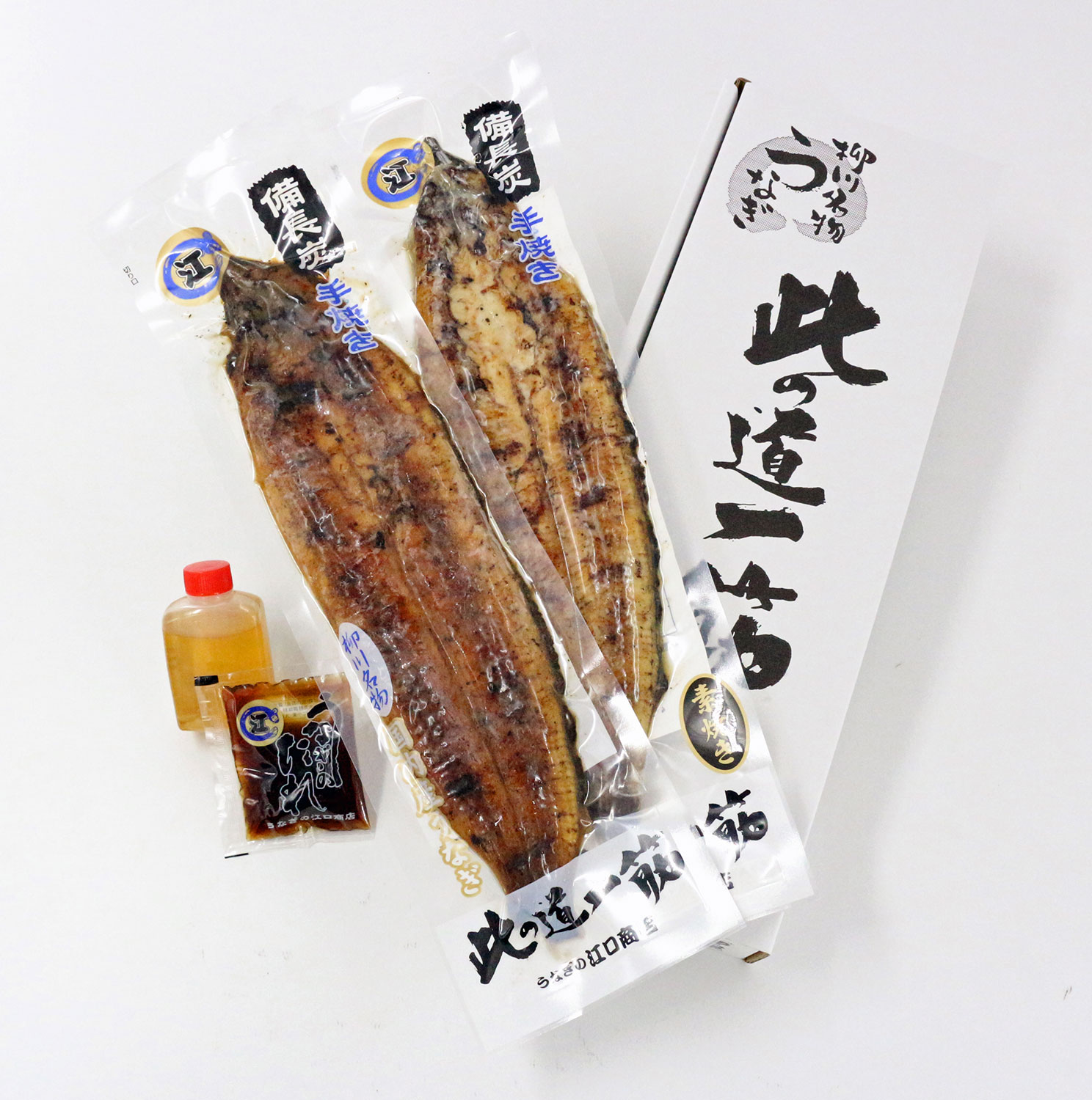 国産うなぎ蒲焼き1尾真空×1、国産うなぎ素焼き1尾真空×1、うなぎのたれ小袋×1、うなぎ甘酢×1